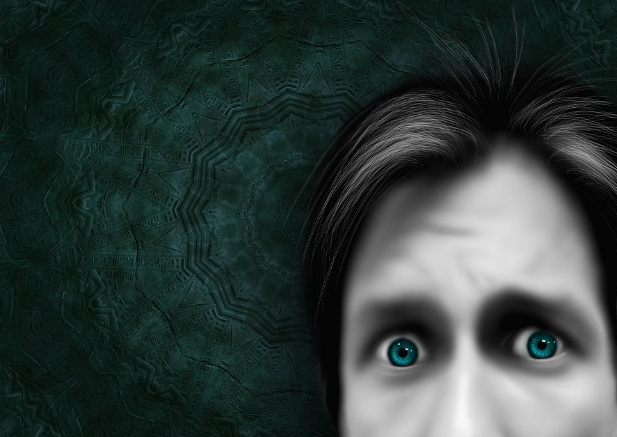 The background is abstracted from holiday snapshots taken in Karnak, the foreground image digitally painted using a Wacom tablet.