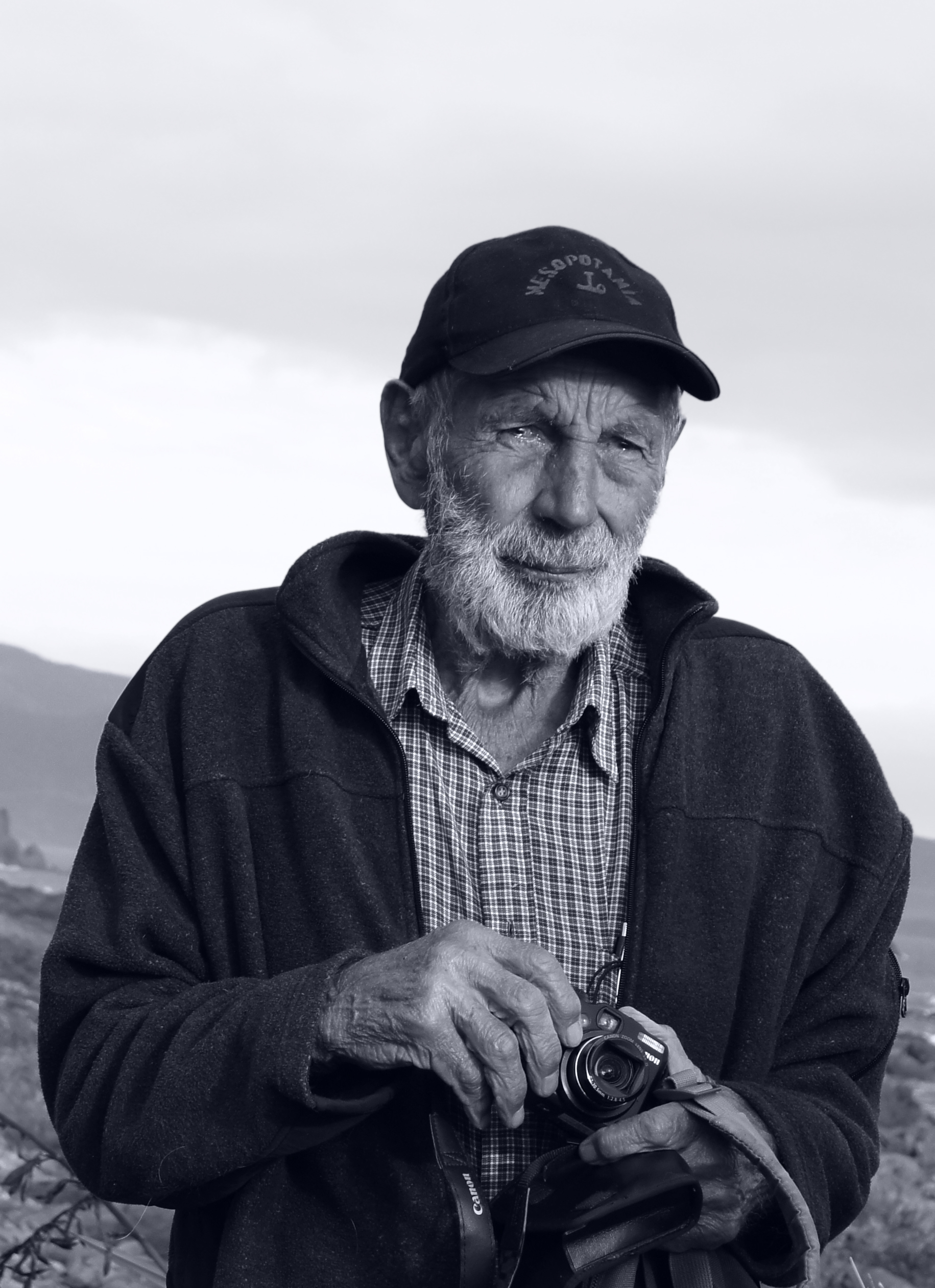 Retired sports photographer Peter Bush, walking his dog on the South Coast near his home, and graciously willing to be photographed. He still always carries a camera, albeit no longer always the enormously lensed variety.