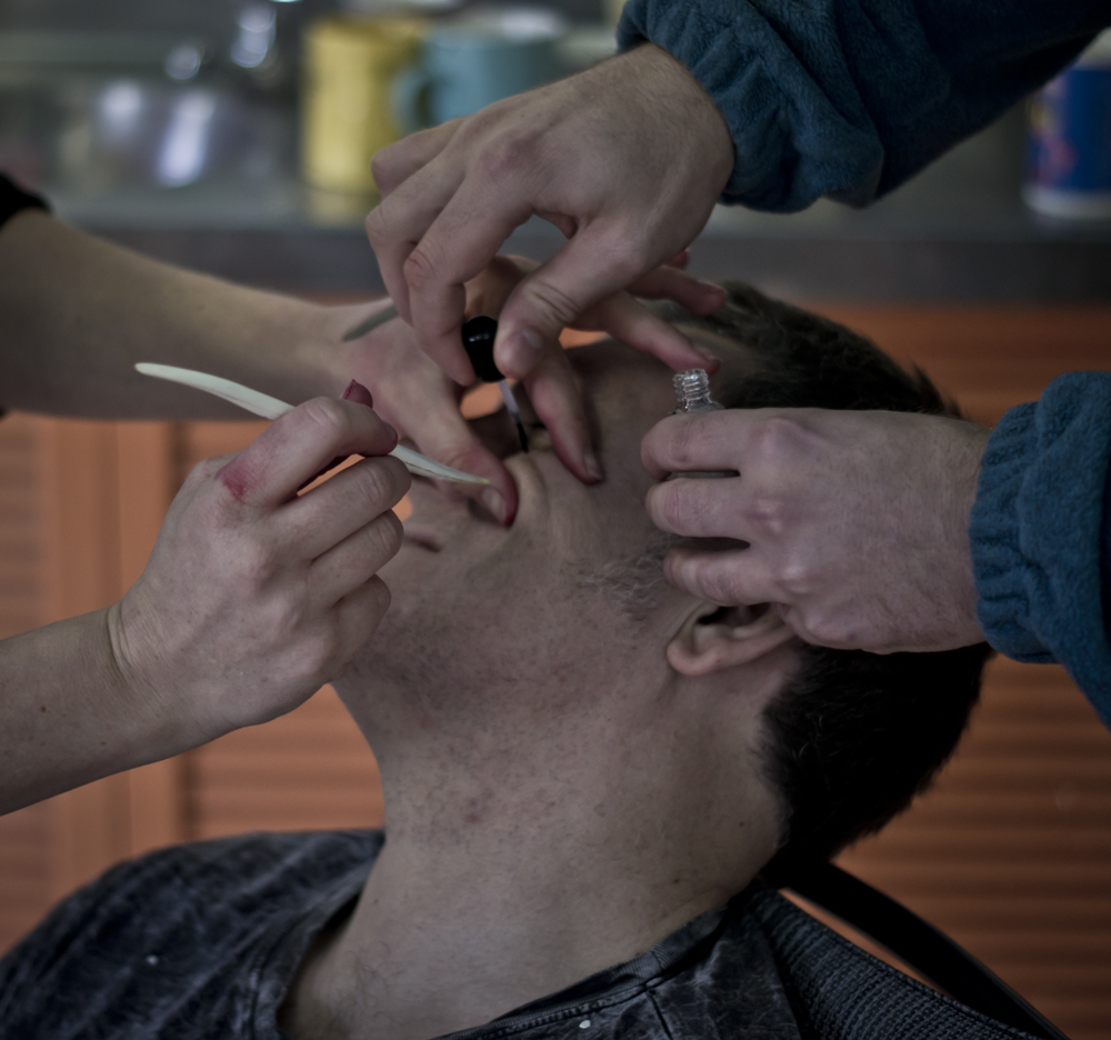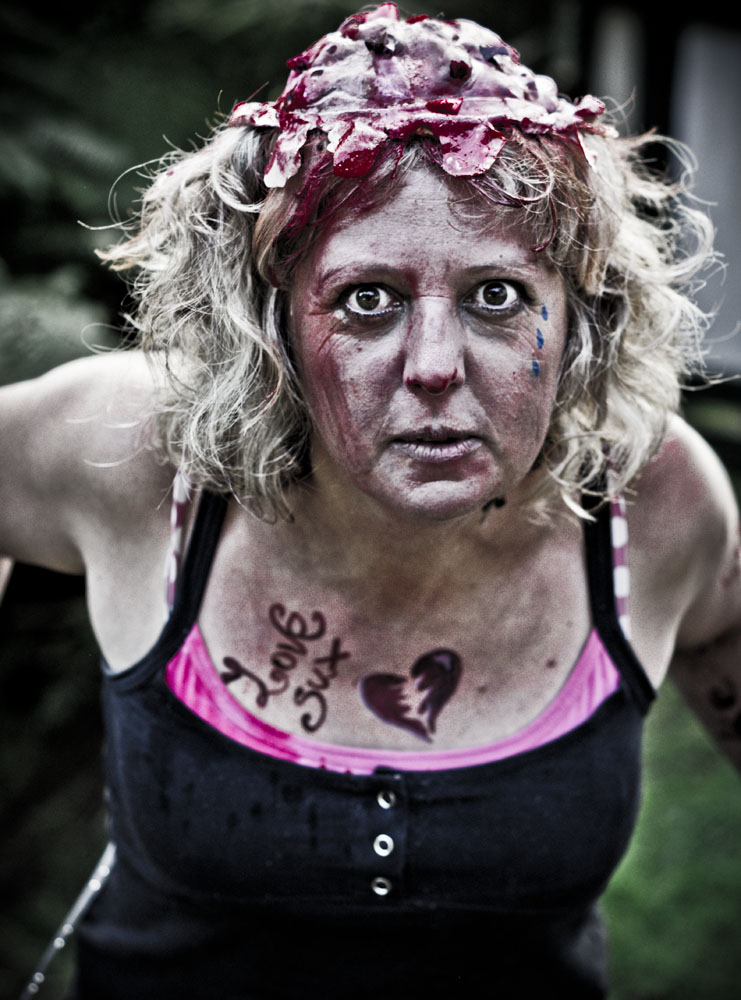 Recently my partner and I joined Chalkle, a wonderful group of local people who love to do stuff, and love to teach other people the stuff they most love to do. Since joining, I’ve tried laser cutting, bow making, Spanish cooking, and cheese making and taught an introduction to improvised comedy class. Next week, I’m learning to play the ukulele. Then there was the afternoon at a workshop on special effects. Using makeup (more makedown really) a rubber brain and much fake blood, our team of five created a 30second movie that involved an exploding head. I was camera person and ‘tattoo artist’ for our drug addled heroine. Silly good fun – with a serious anti drug message, of course. Ahem.