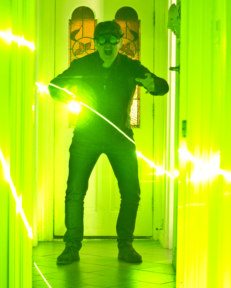 Spent some time last night working out camera settings and such for an upcoming night photography workshop, using a couple of budget laser pointers. Welding goggles and/or padding was worn under masks to keep eyes safe.