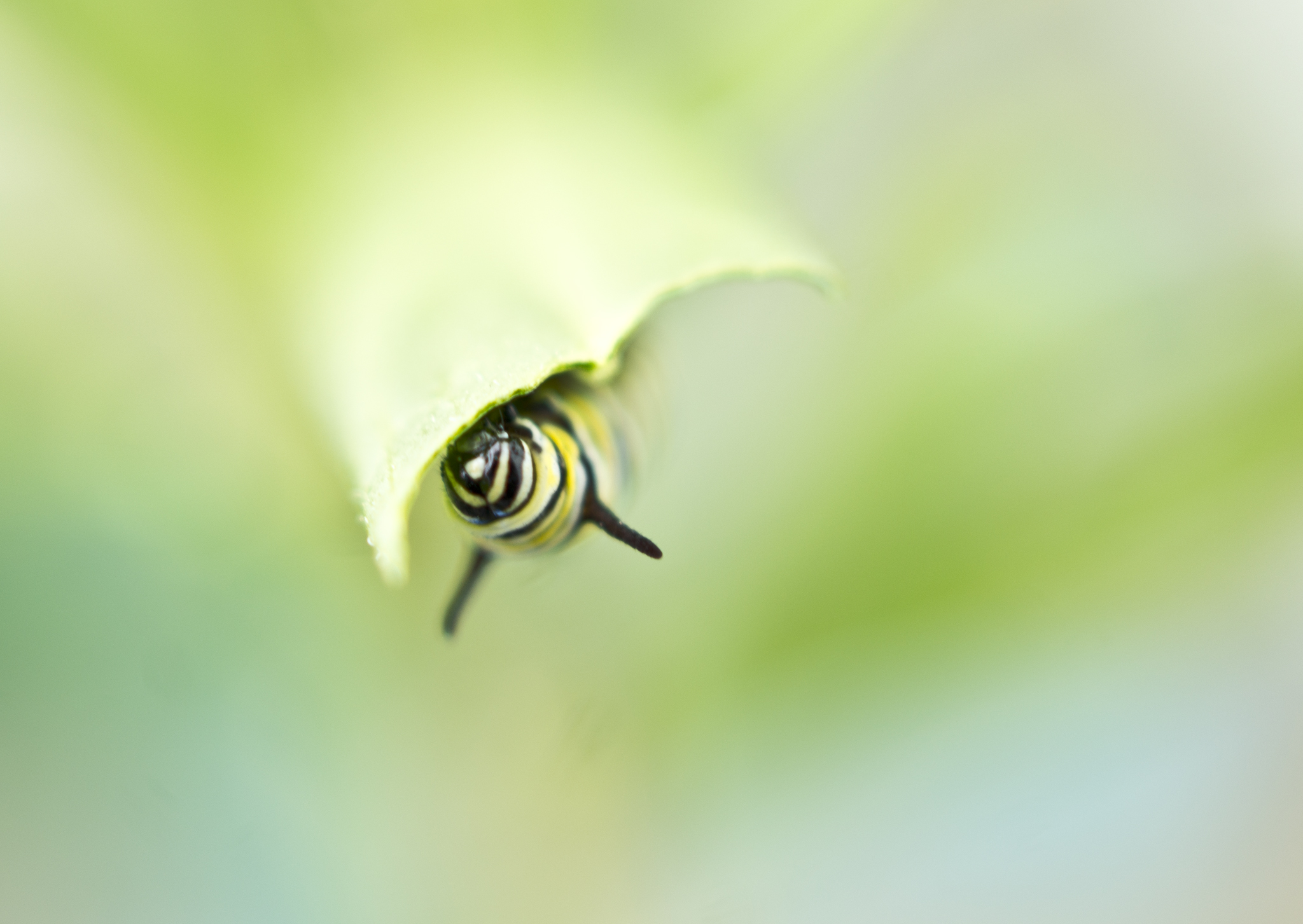 Look, an early monarch caterpillar, one of two hatchlings now munching through the remains of last year’s tattered swan plant. New plants have been now planted elsewhere in the garden; the trick will be to get balance twixt infestation and vegetation a bit more even this year. Roll on summer of the butterfly!