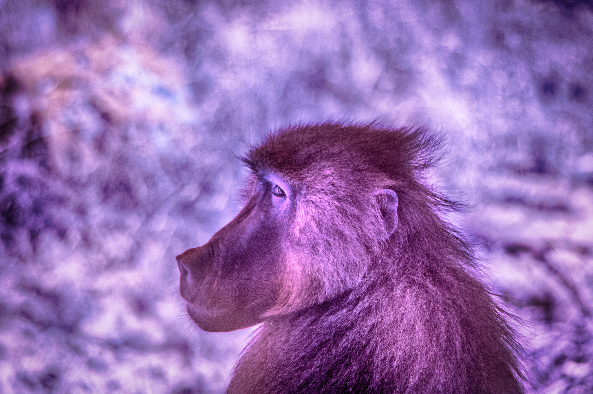 IR Baboon January 9, 2016 Return to: Pensive baboon, yawning sun bearFull resolution (2048 × 1361) Image navigation Next Image Baboon with IR modified camera, Wellington zoo