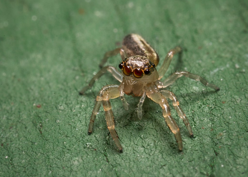 This little garden cutie (approx 3mm or so long) kept moving its head from side to side to get a good look at me. And then, being a baby jumping spider, it would sort of sproink sideways, only to stop and look around at me again. Bad for the taking of photos, but really rather entertaining to watch.