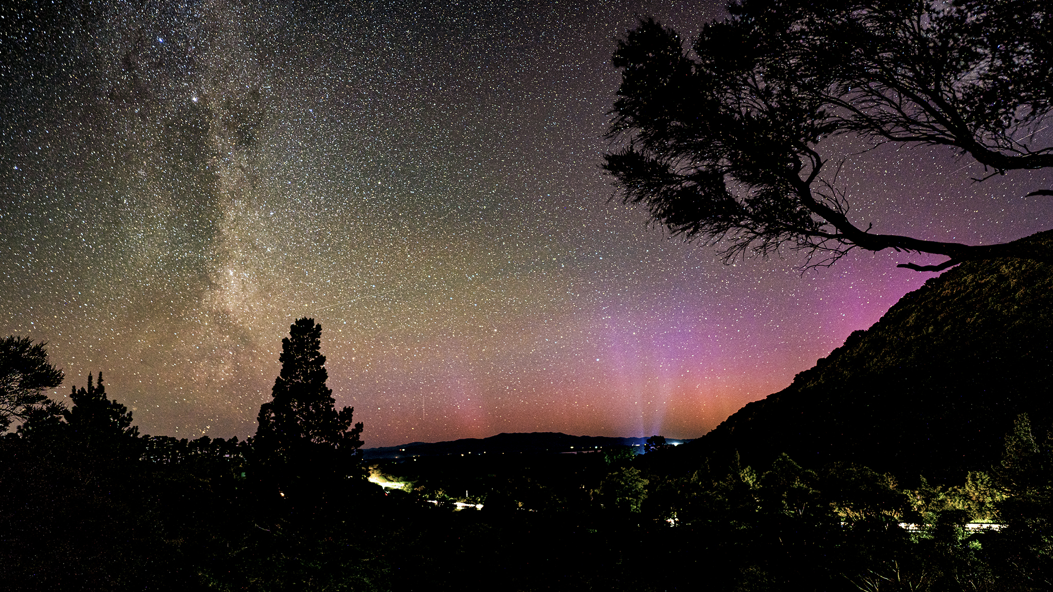 Last Thursday, and again tonight, there’s been enough aurora in the sky for it to be visible where I live – this almost never happens. At least not on moonless nights when there’s no cloud. So, back to basics trying to remember how to do astrophotography. View to the South over Lake Wairarapa, from near Featherston, New Zealand.