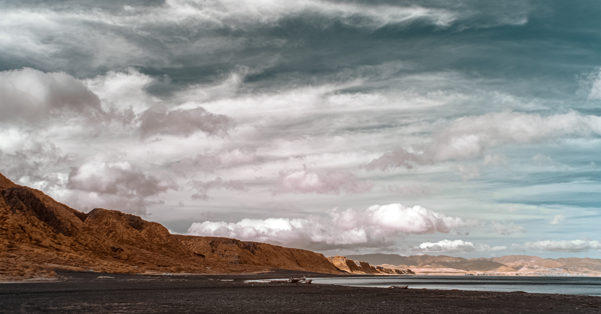 With the complete lack of imagination exhausted geographers so often display … this is Ocean Beach (Wairarapa) New Zealand. There are at least five other Ocean beaches in NZ, but this one is as bleak and windswept as you could hope for, and it looked great in the infrared. There were also a lot of deceased fish and small sharks scattered on the gravel, so it smelt quite distinctive too.
