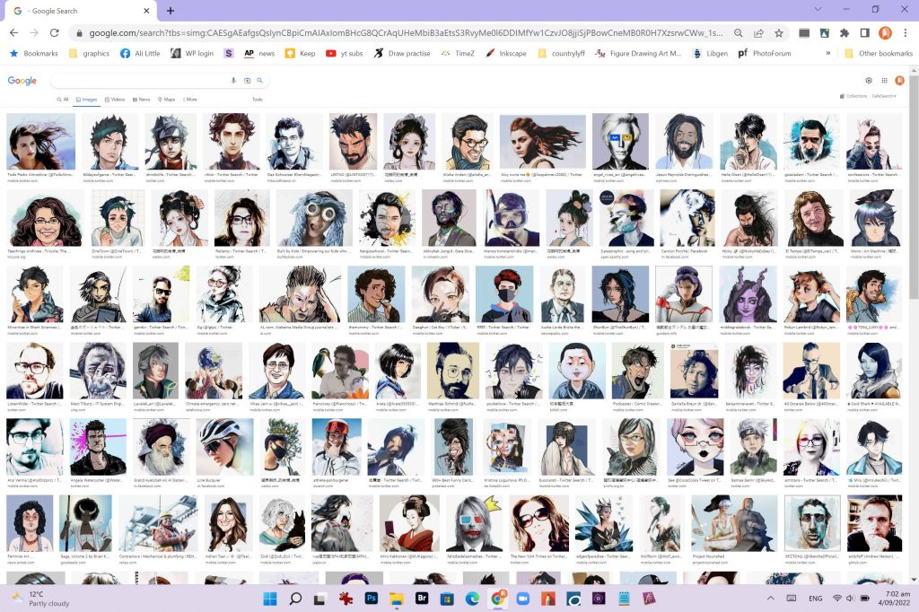 Dall-E 2 is the mildly annoying name of the new-to-me ai image generator I played with this week, trained they claim on six million images. It will create whatever you ask for, unless it breaks rules around decency or depicting a real person or you want something other than a1024px square image. The starting point can be a word description, or an existing image that you own the rights to. The systems generates variations, and variations on those variations until you get something interesting, or run out of patience or credits.