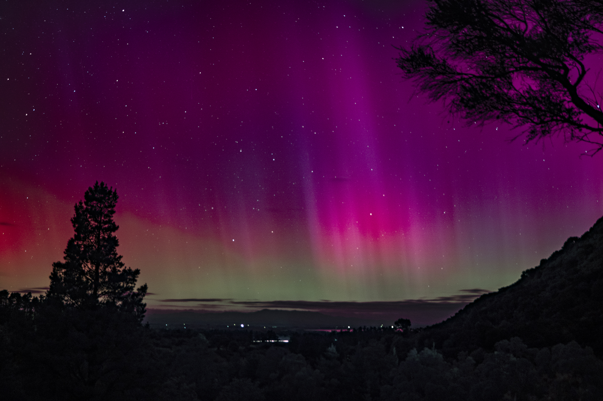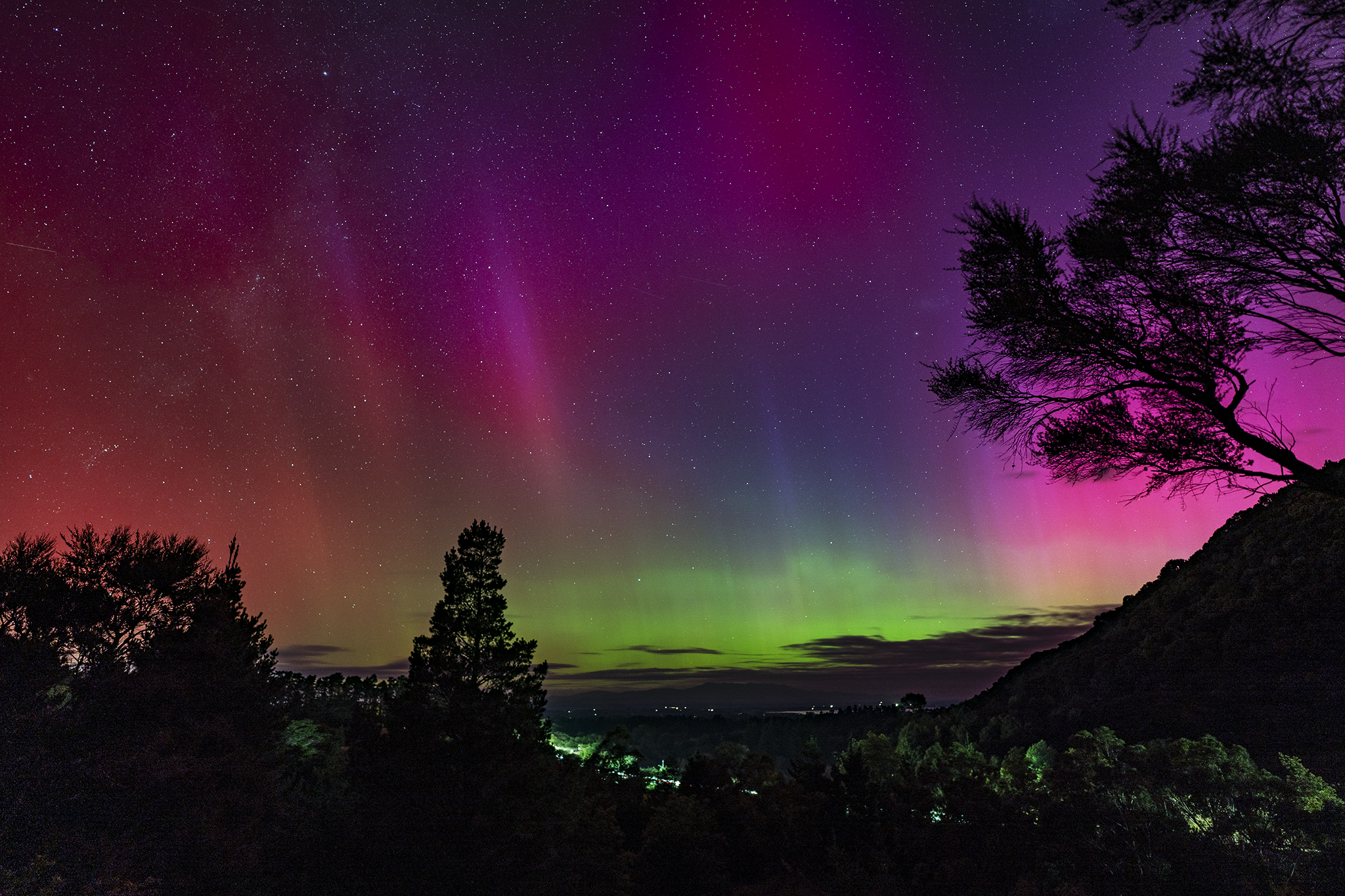 Look up! In the sky!! So much action. My afternoon was spent watching all the crazy photos happening in other other parts of the world where it was night time, including from places that almost never get to see aurora. Also watching the clear skies here start to get just a hint of cloud, and the forecast lots of cloud. Sun goes down, and before the sky is even slightly dark actual aurora start to show. Aurora Australis here in the Southern Hemisphere, versus the Northern Lights folks in the North were getting, but so much going on.