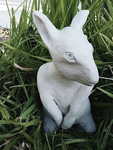 The prototype (and so far sole representative) of an army of plaster bunnies that my partner wanted to have for target shooting. This one is safe . . .